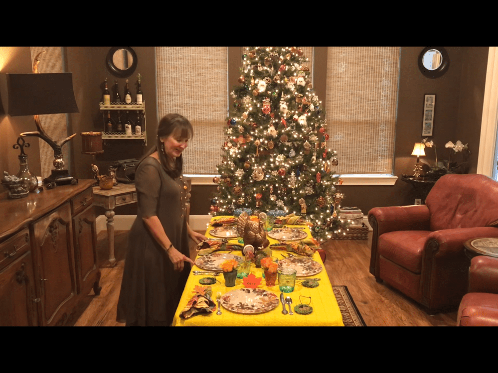 DECORATE with ceramic TURKEYS, ACORNS and PUMPKINS. Kids love colorful PLACE CARDS – PLUS no fussing and fighting about where they are going to SIT!